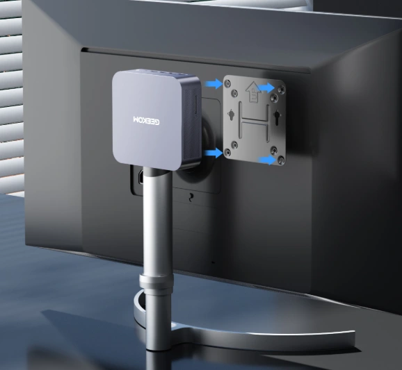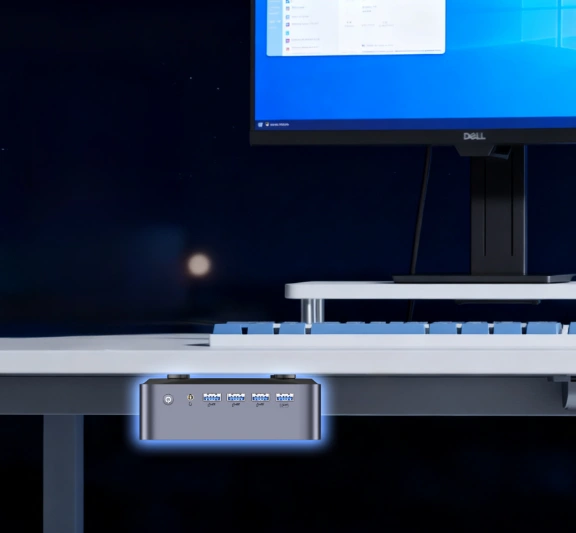 Progettato per opzioni di montaggio versatili: fissa il dispositivo in modo sicuro dietro i monitor, sotto le scrivanie o sulle pareti per ottimizzare lo spazio e creare un ambiente ordinato e senza ingombri.