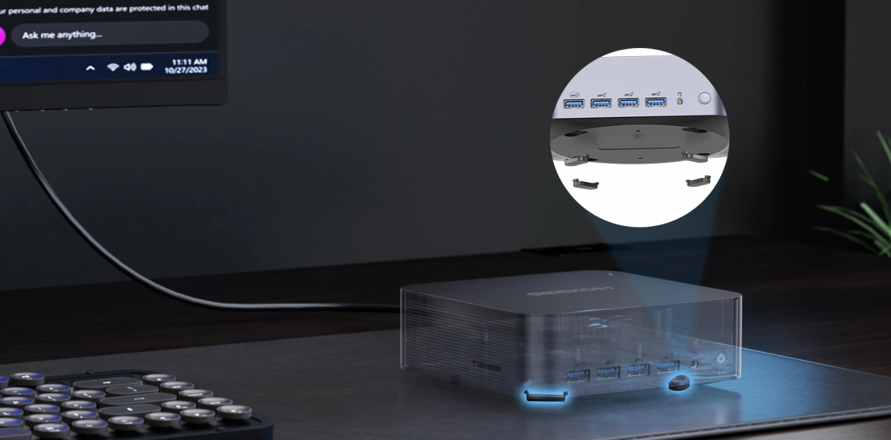 - Supporto GPU esterna via OCuLink + USB 4.0 – Espansione avanzata con 15 porte, tra cui HDMI, USB-C e lettore SD.
