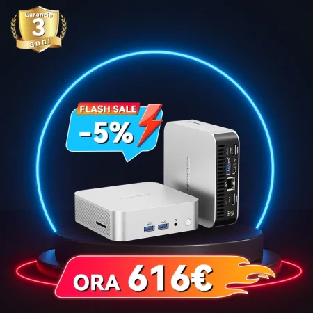 Nonostante le sue dimensioni ridotte, questo minipc è un vero concentrato di potenza. Perfetto per multitasking e programmi pesanti.